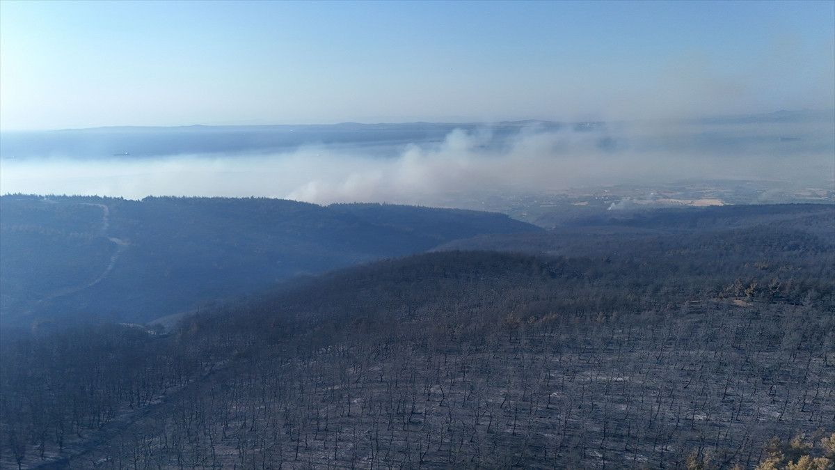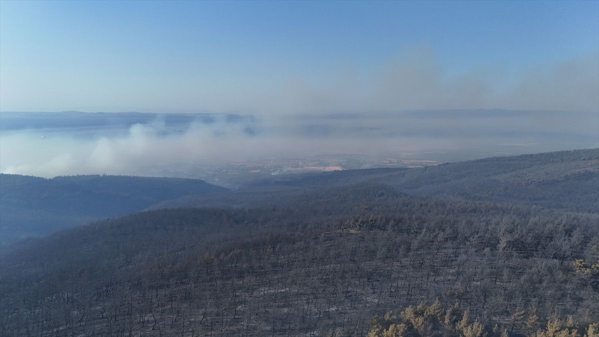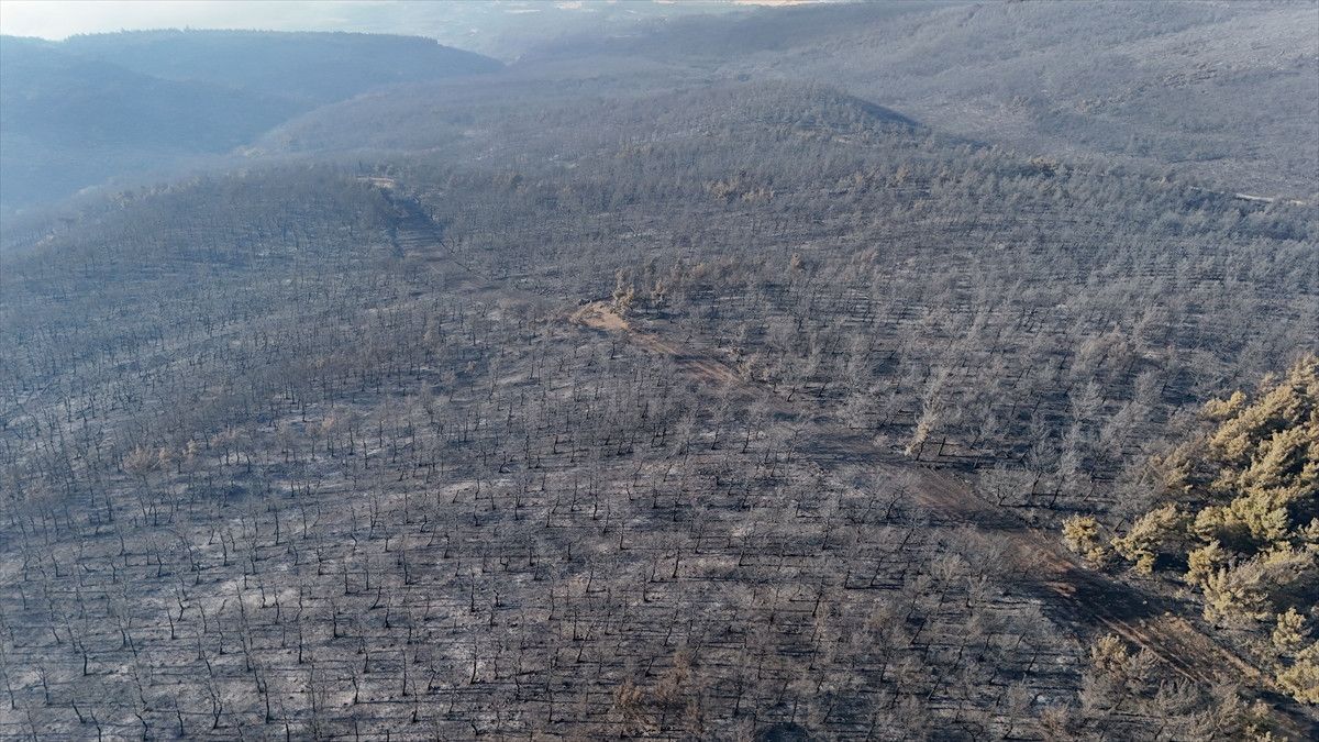 Büyük bölümü çam ormanı olan bölgede yanan alanla dronla görüntülendi.