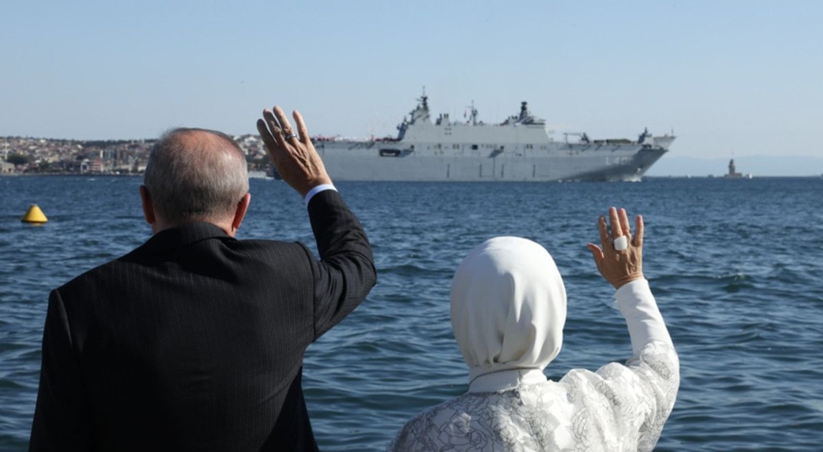 Cumhurbaşkanı Recep Tayyip Erdoğan da İstanbul Boğazı’ndan geçiş yapan Türk donanmasının seçkin gemilerini Dolmabahçe’de selamlarken, NSosyal hesabından “Tarihe altın harflerle kazınan Zafer Haftamızda güçlü ve kudretli donanmamızla Mavi Vatan yolculuğu” açıklamasında bulundu.
