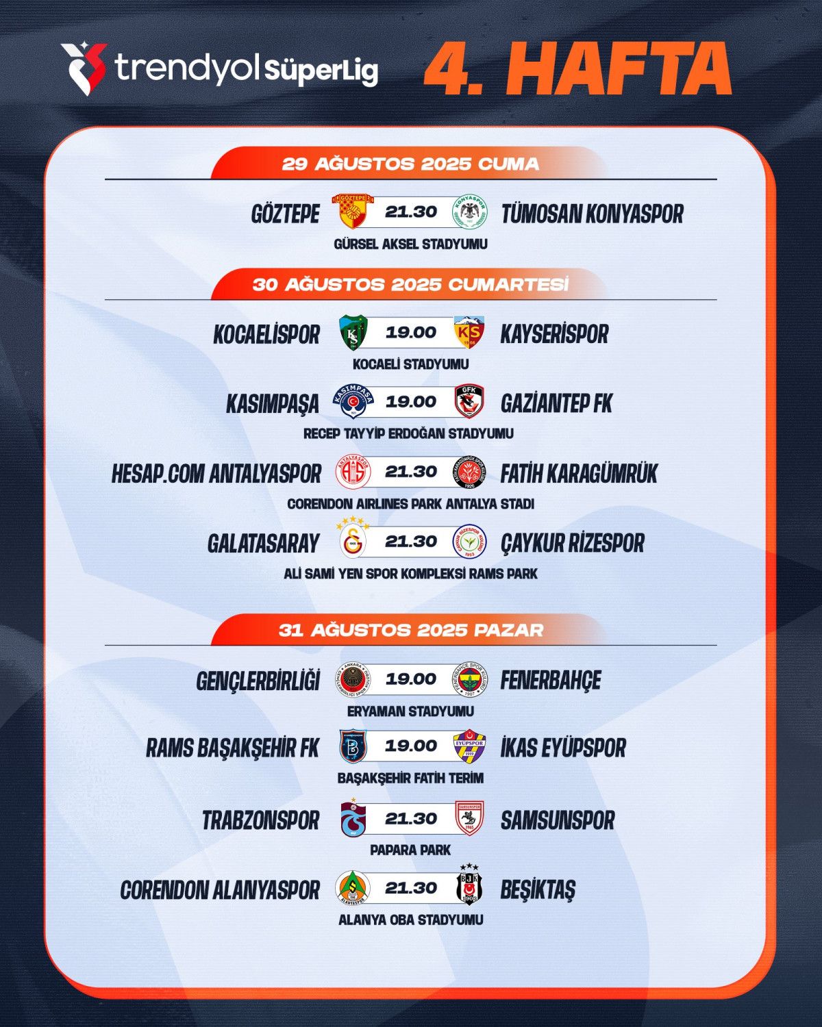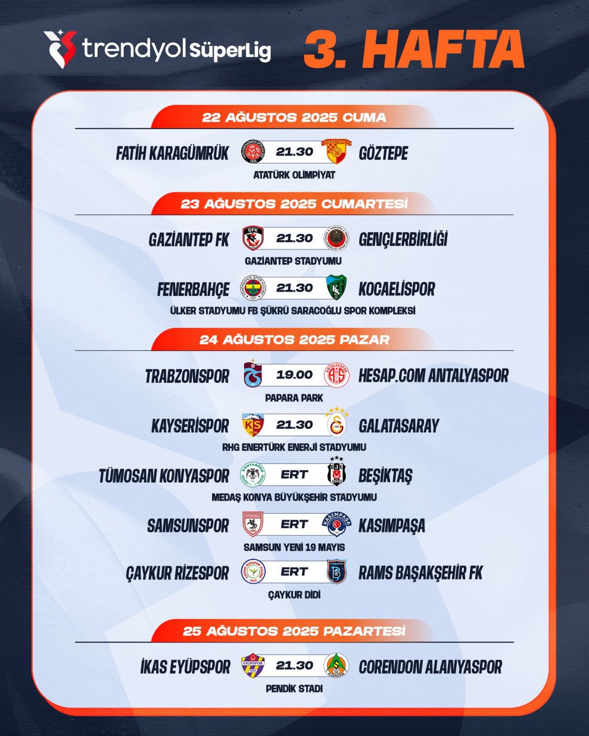 SÜPER LİG’DE 3. VE 4. HAFTANIN PROGRAMI