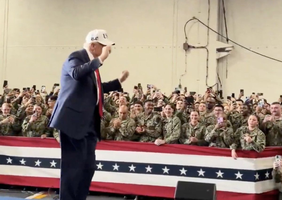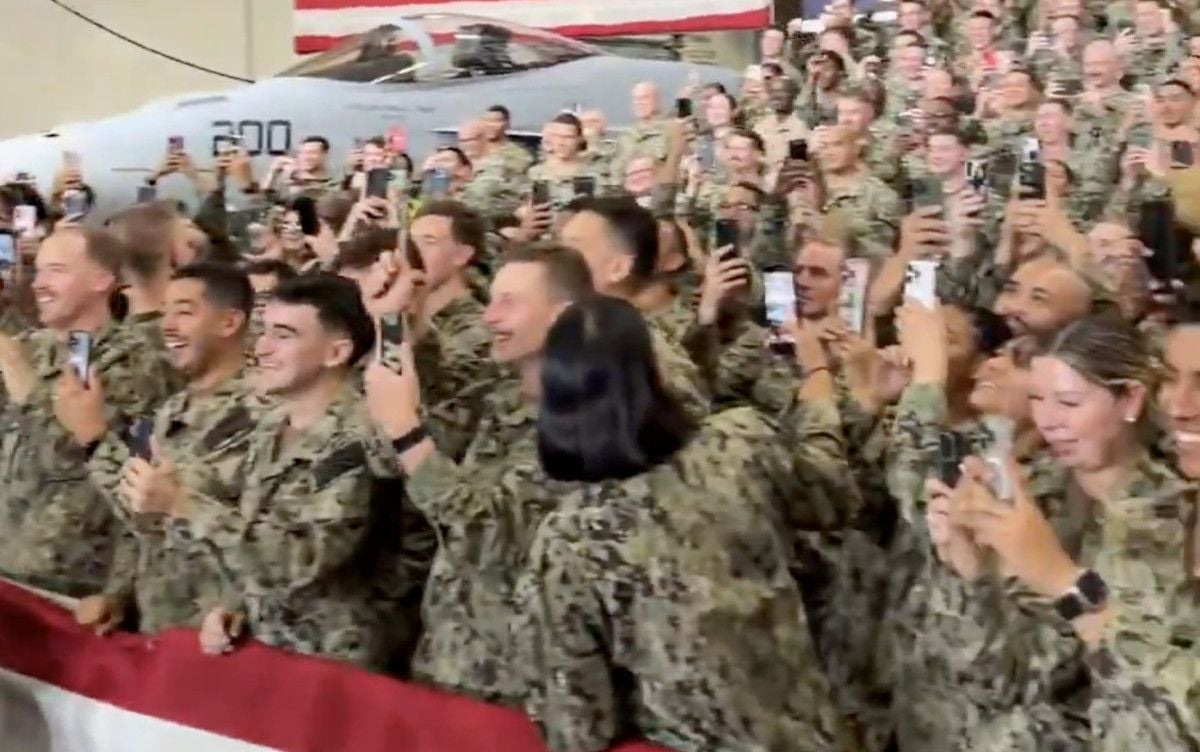 ABD Donanmasındaki askerler de Trump’ın dansına alkışlarda eşlik etti.