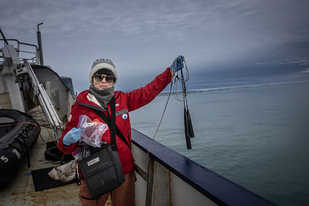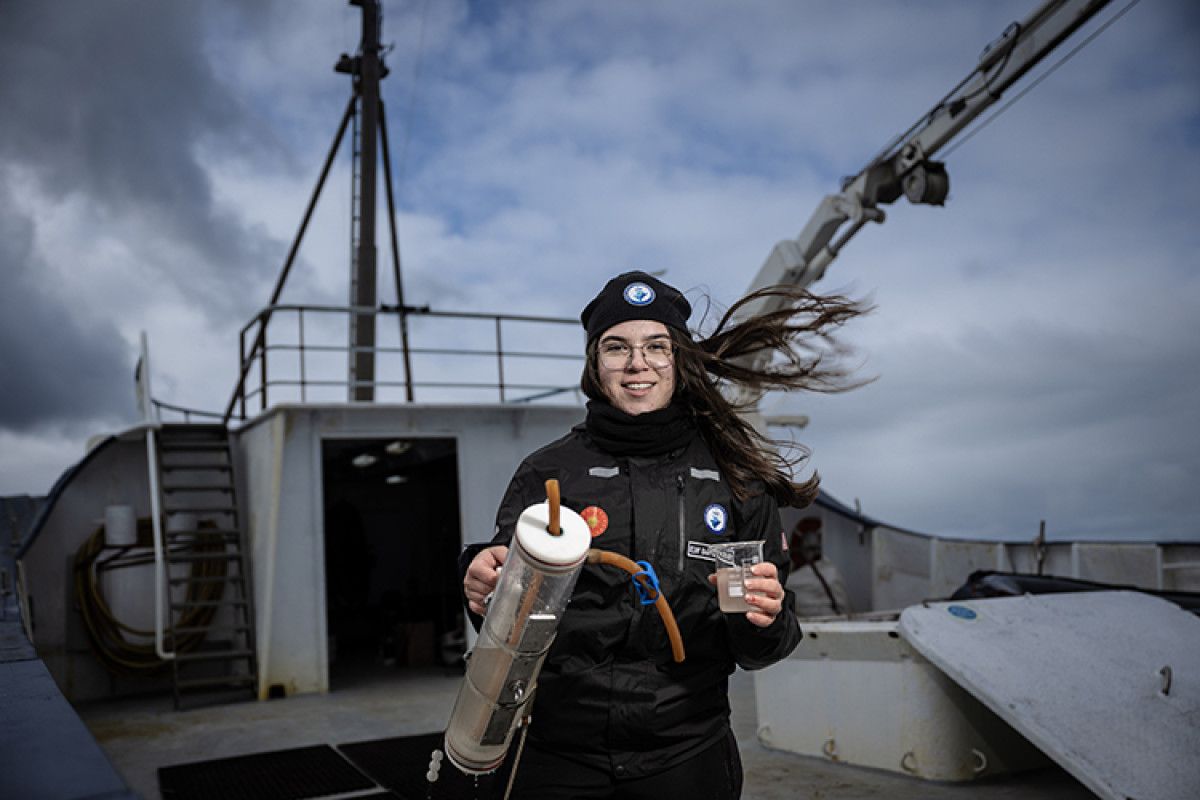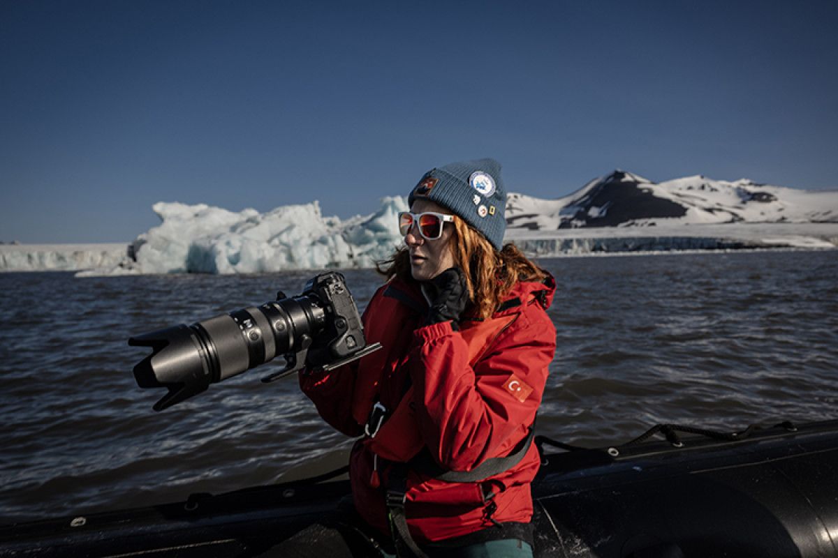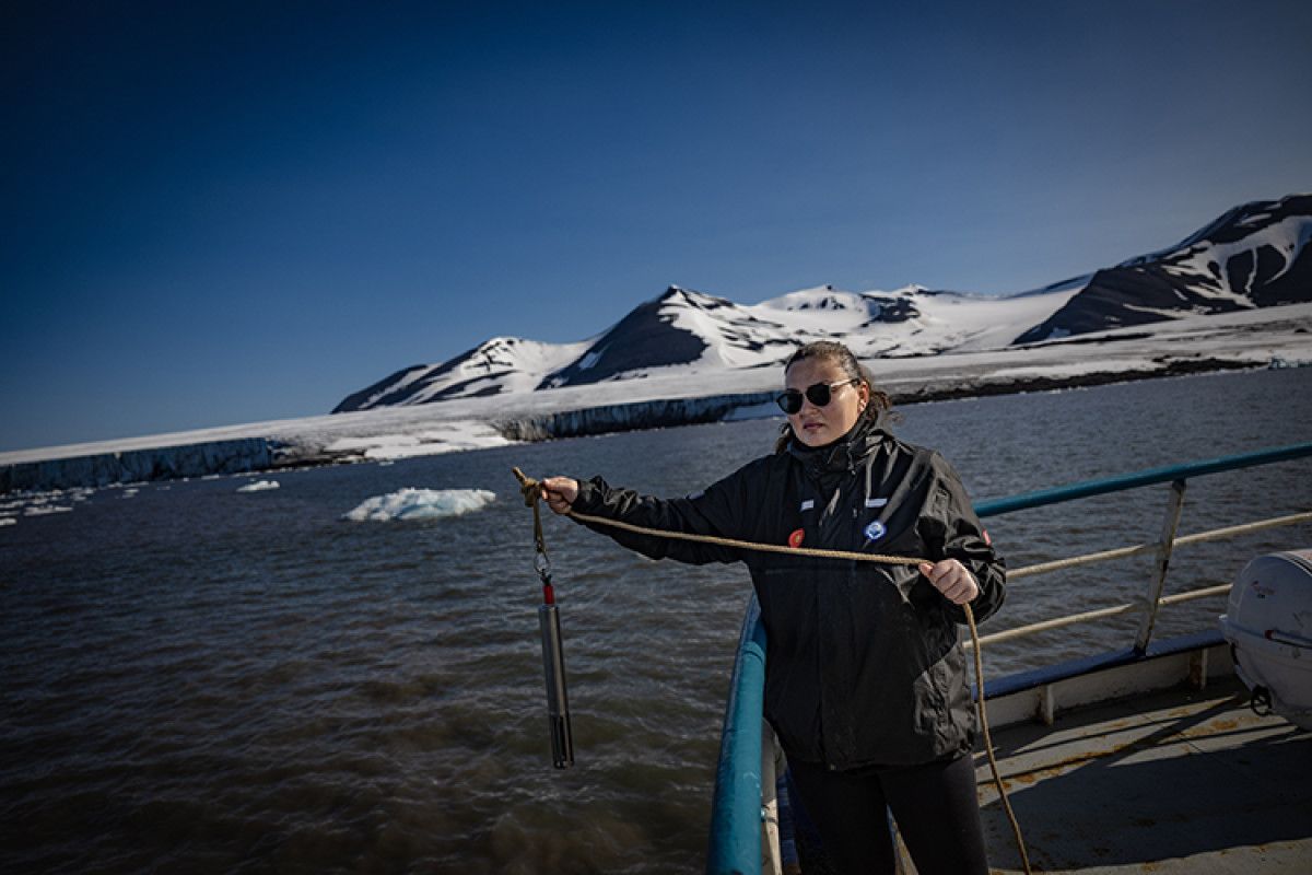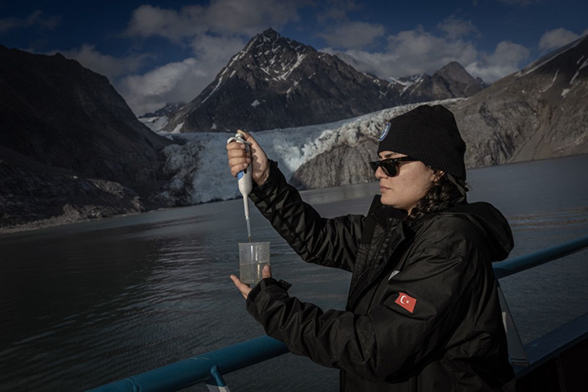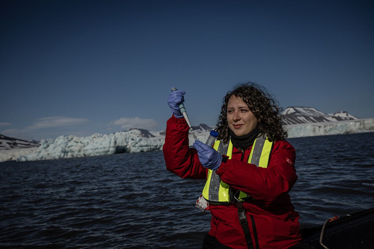 Bilge Durgut (doktora öğrencisi), eDNA ve biyojeokimyasal örneklemelerle Arktik ekosistemindeki değişimleri izledi.