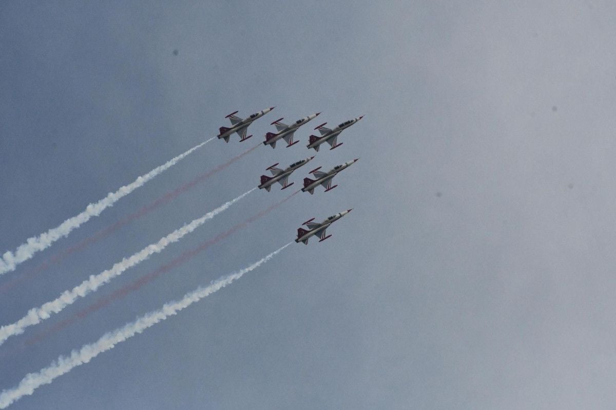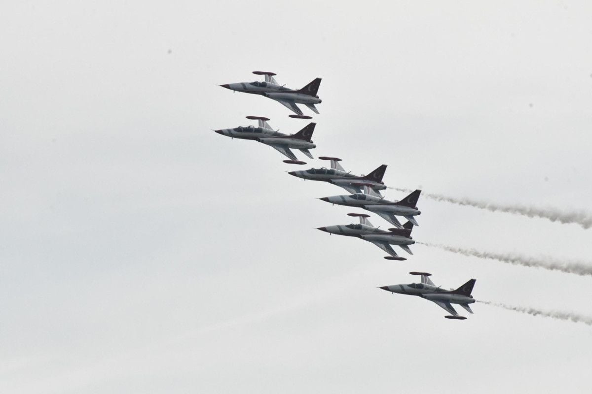 Çorlu Atatürk Havalimanı’ndan kalkan Türk Yıldızları, sergiledikleri akrobasi manevraları, senkronize dönüşler, dalışlar ve dumanlı manevralarla izleyenlere unutulmaz anlar yaşattı.