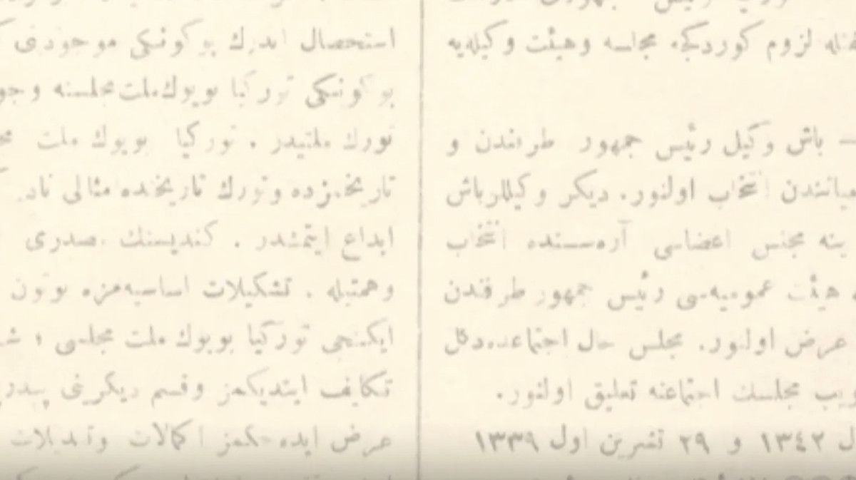 Türkiye Büyük Millet Meclisi’nin Anayasa’da 29 Ekim 1923’te yaptığı değişikliklerin yazılı olduğu sayfa ortaya çıktı. Bu metin, Cumhuriyet’in ilânının resmî belgesi olarak kayıtlara geçti. (TBMM Arşivi).
