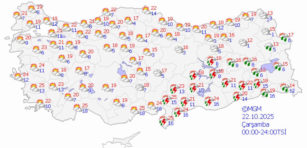 MGM’nin verilerine göre, hafta sonu en düşük ve yüksek sıcaklıklar şöyle şekillenecek:
