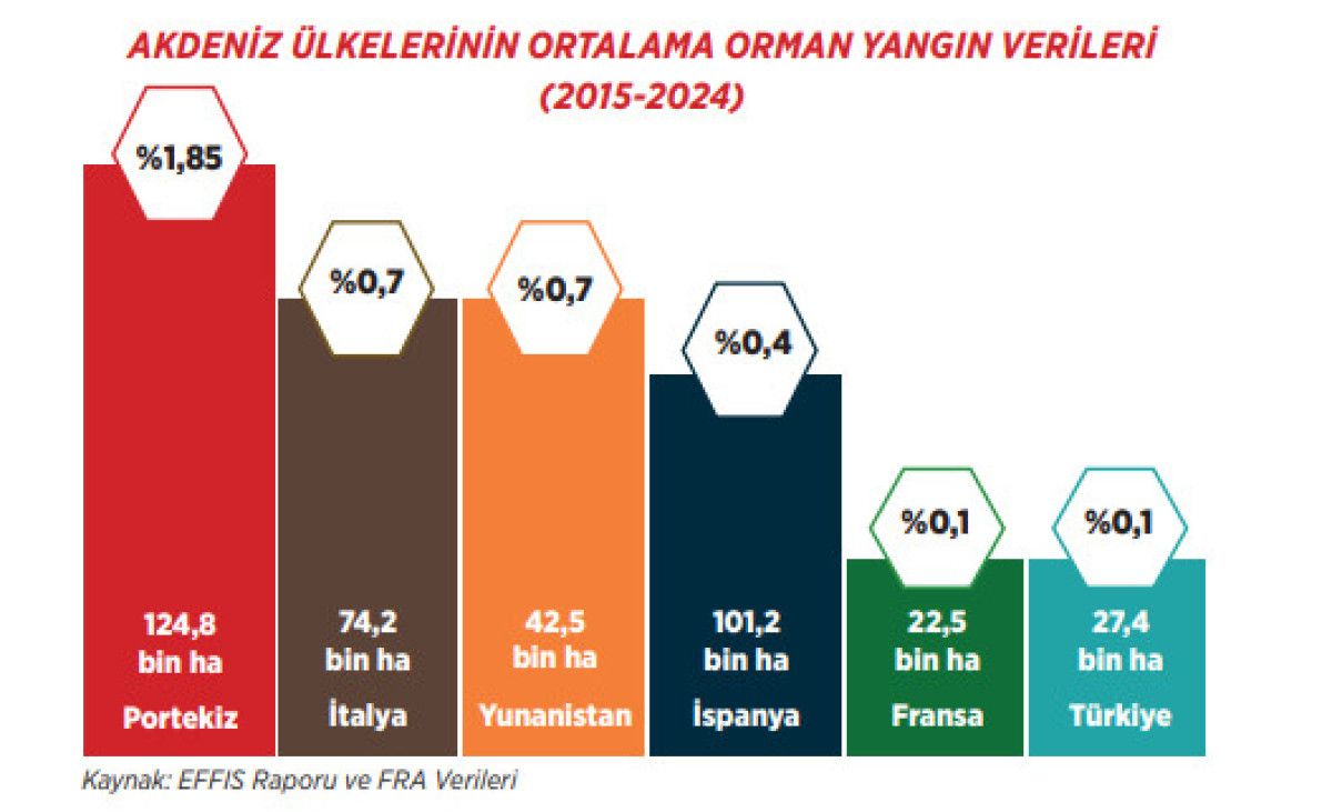 EFFIS Raporu ve FRA verilerine göre Türkiye, 2015- 2014 yılları arasında Akdeniz ülkeleri arasında orman yangınlarıyla mücadelede lider oldu.