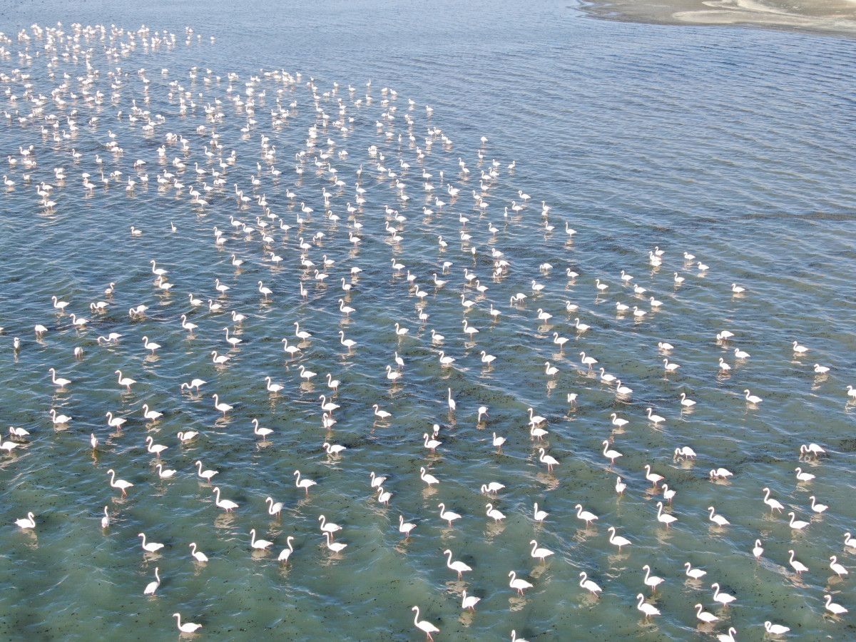 Türkiye’nin önemli sulak alanlarından biri olan Van Gölü havzası, göç yolculuğundaki binlerce flamingoya ev sahipliği yapıyor.