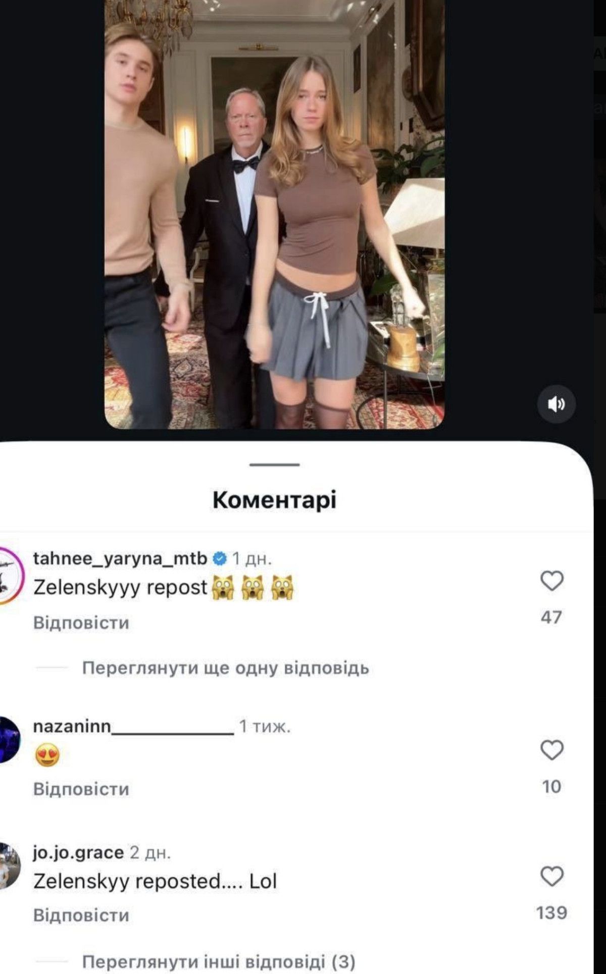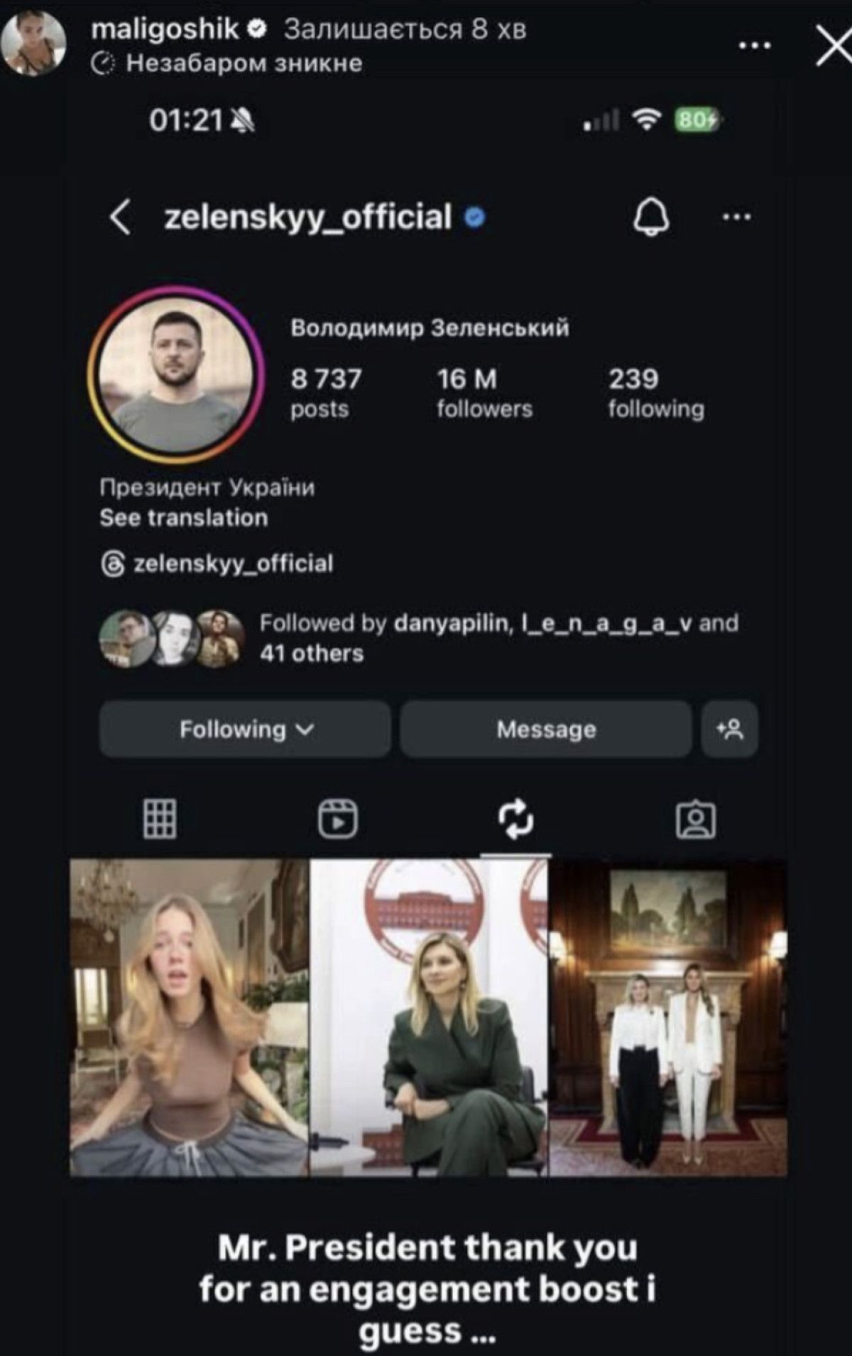 Zelensky, sosyal medya platformu Instagram’da Onlyfans modeli Anna Maligon’a ait bir paylaşımı yeniden gönderdi.