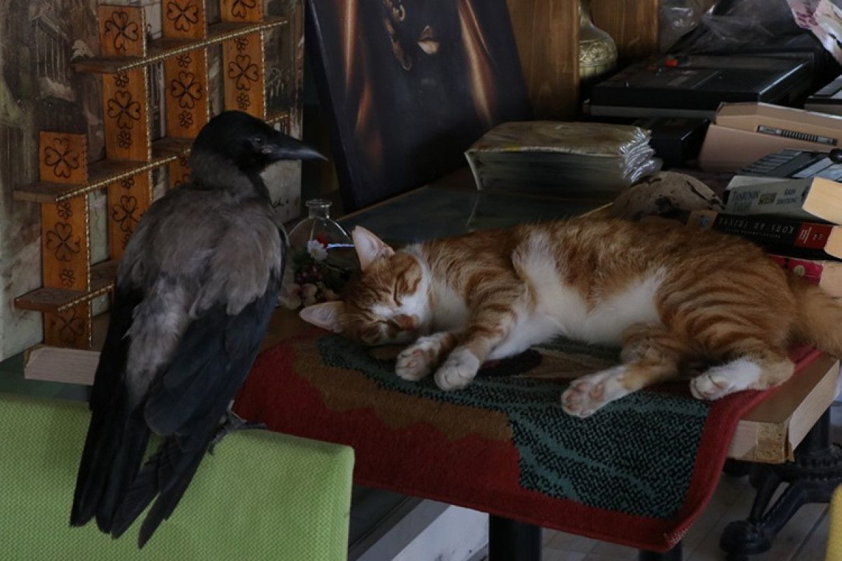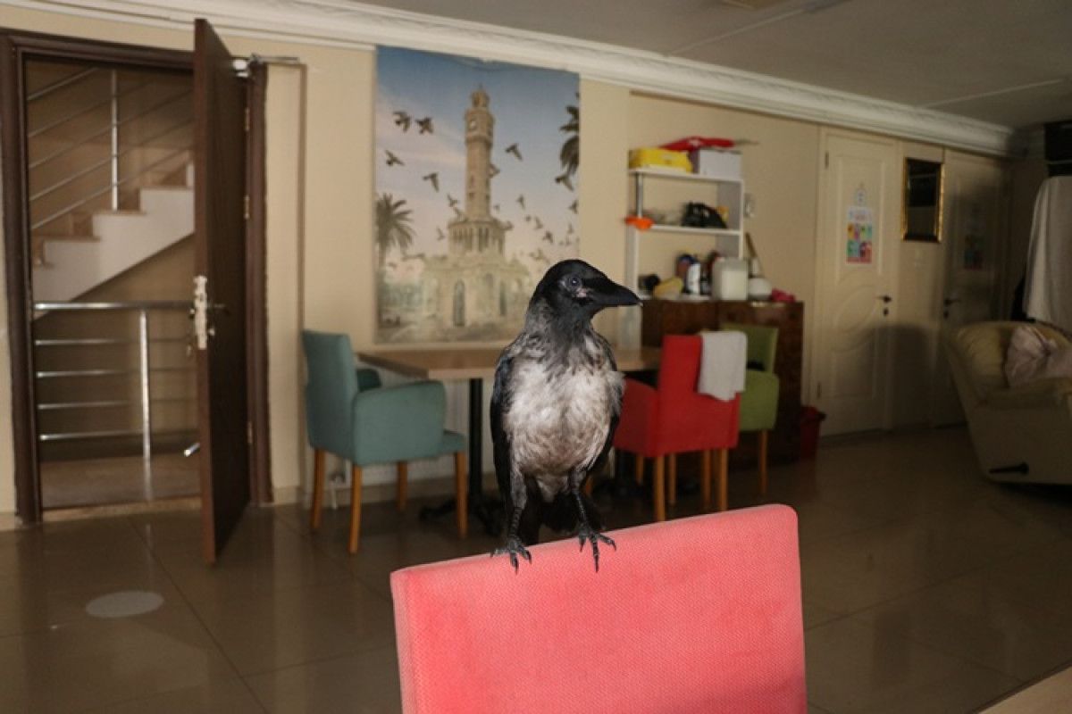 Kedi ve köpeğiyle birlikte pansiyonun kafe bölümünde büyüttüğü kargaya “Siyah” adını veren Boyraz, kısa sürede onunla güçlü bir bağ kurdu.