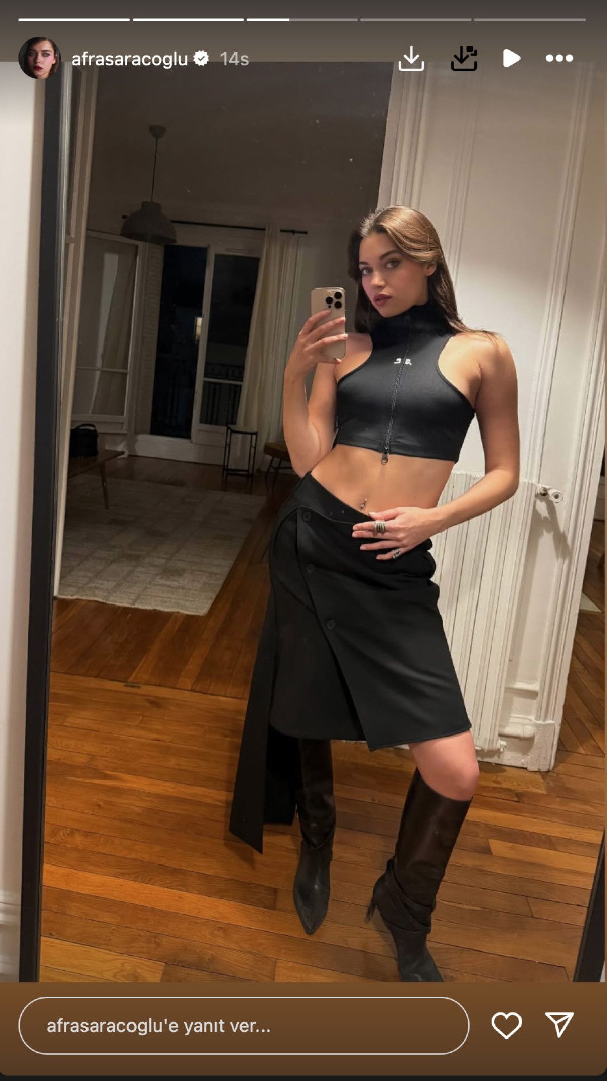 Bu defa ayna karşısında poz veren Saraçoğlu’nun kareleri beğeni ve yorum yağmuruna tutuldu.