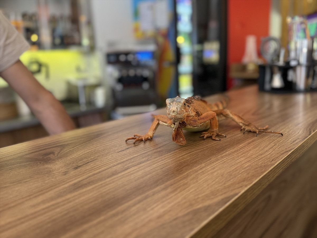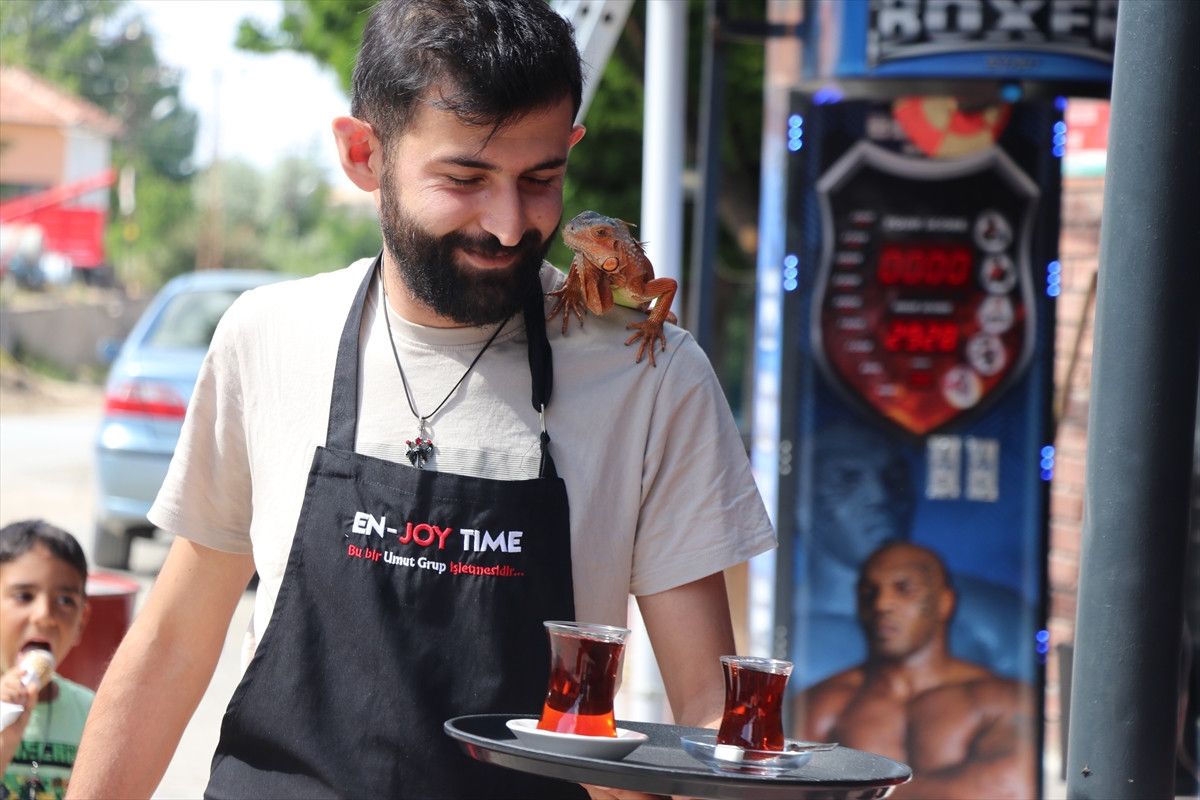 Yozgat’ın Sorgun ilçesine bağlı Bahadın beldesinde bir kafenin maskotu haline gelen iguana “Ökkeş”, hem müşterilerin hem de çevre halkının ilgi odağı oldu.