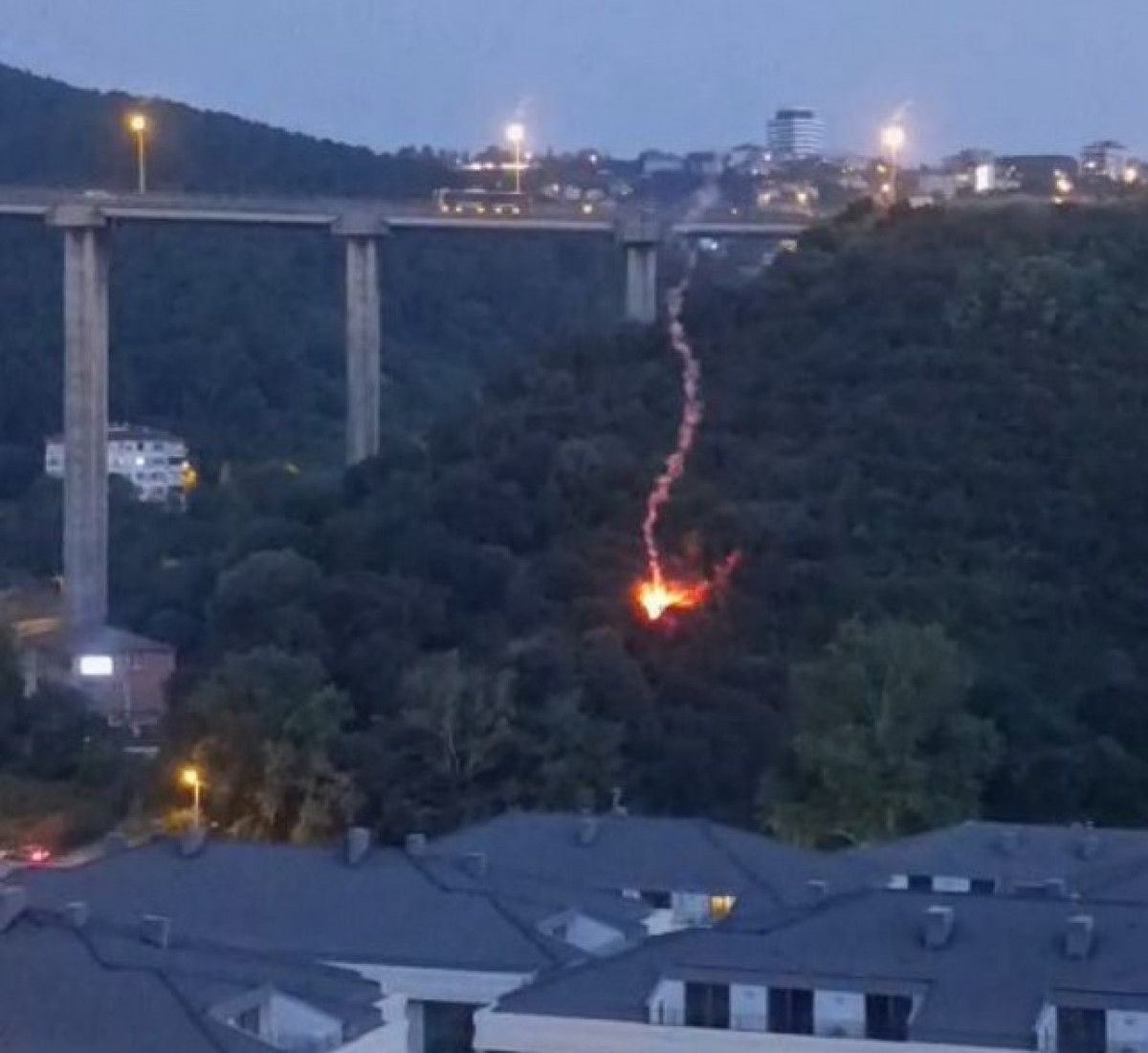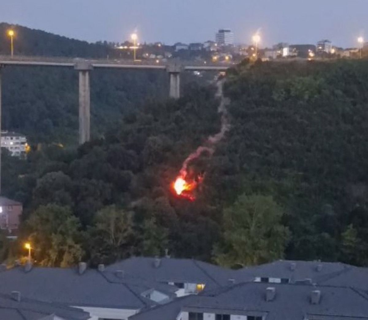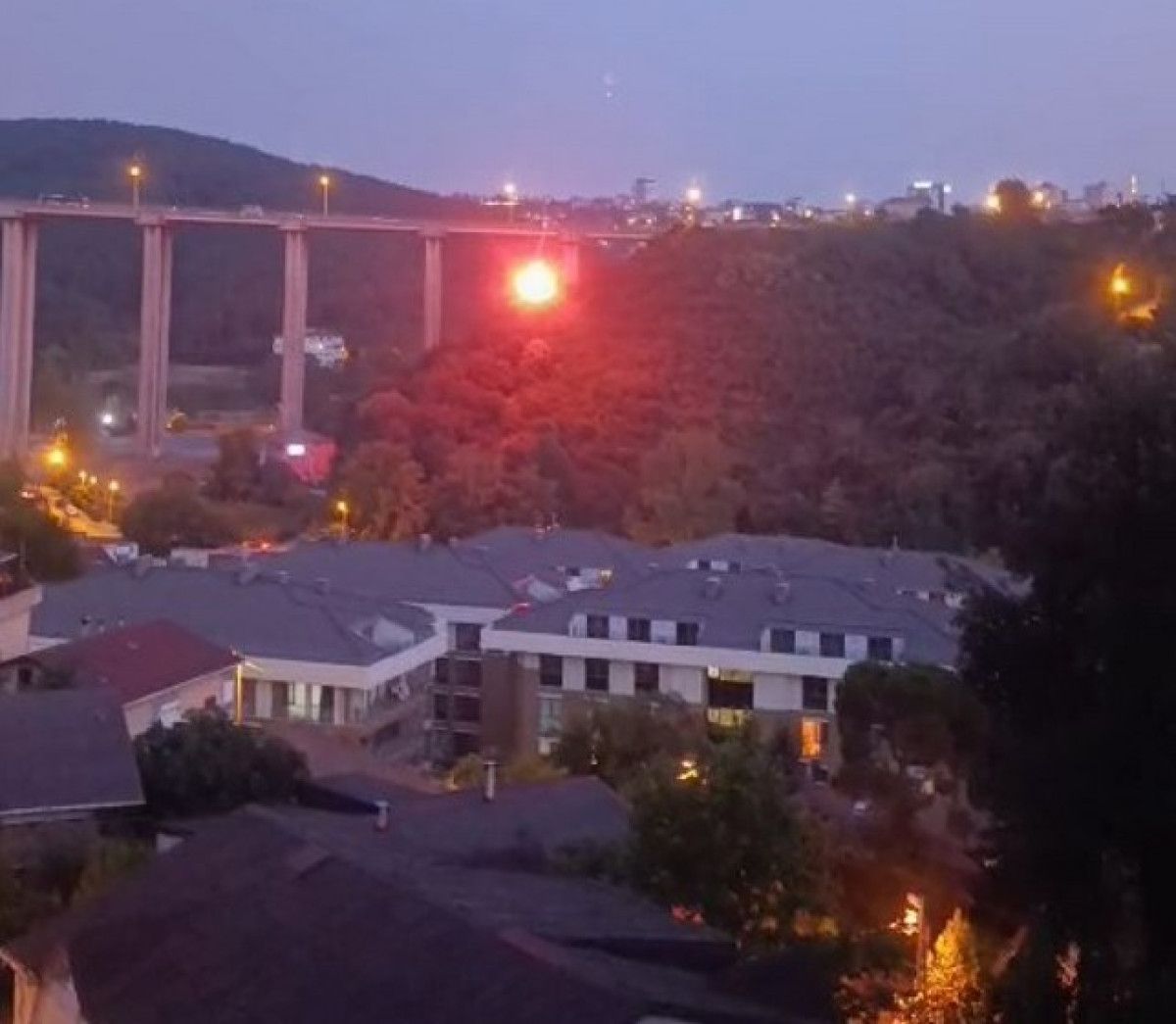 Yangın söndürme çalışmalarının devam ettiği sırada, havadan yanan bir cismin ormanlık alana düştüğü anlar çevredeki vatandaşlar tarafından cep telefonu kameralarıyla kaydedildi.
