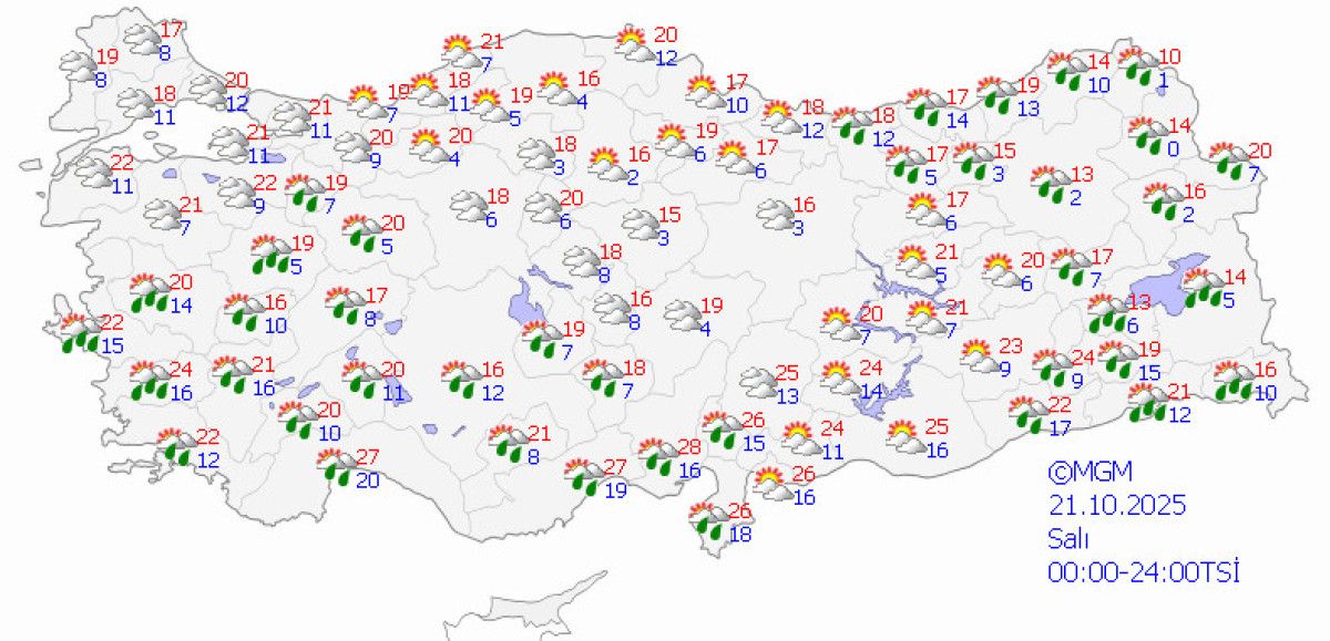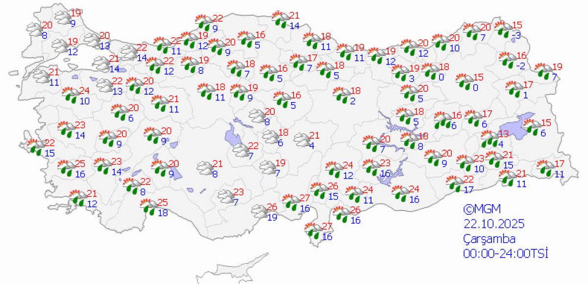 Meteoroloji Genel Müdürlüğü’nden (MGM) alınan tahminlere göre, hava sıcaklıklarının, kuzey ve iç kesimlerde azalması bekleniyor.