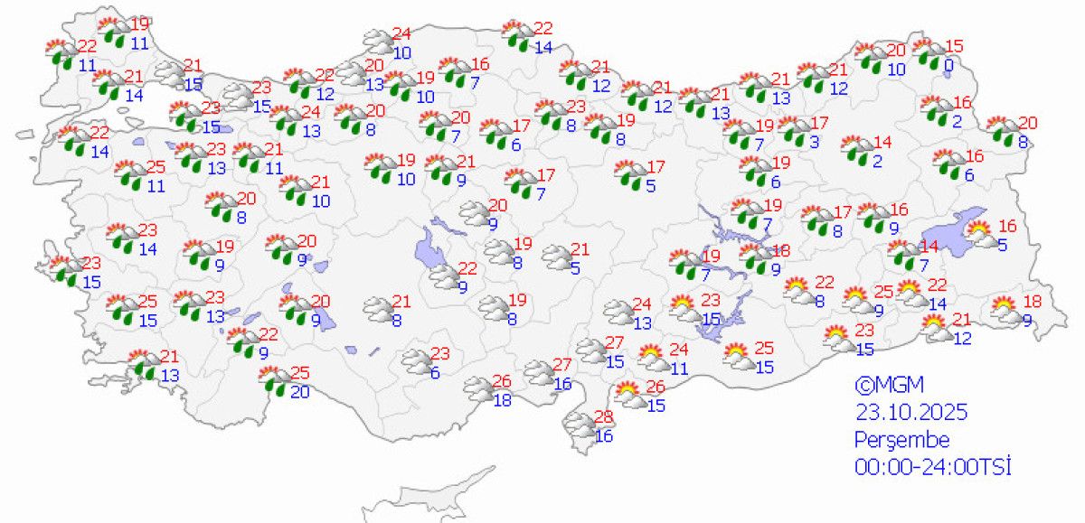Yurdun genelinde parçalı, yer yer çok bulutlu hava görülmesi bekleniyor.