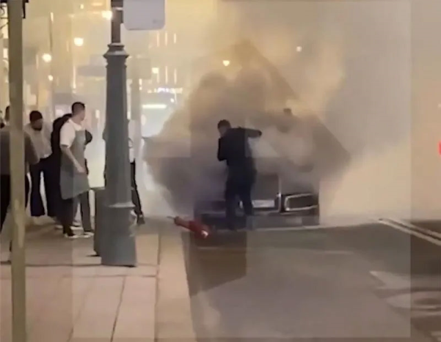 Başkent Moskova’daki Federal Güvenlik Servisi (FSB) karargahı yakınlarında meydana gelen patlamanın ardından limuzin alevlere teslim oldu. Aracın motorundan başlayan ve kısa sürede limuzininin iç kısmına yayılan yangın nedeniyle ölen ya da yaralanan olmadı.