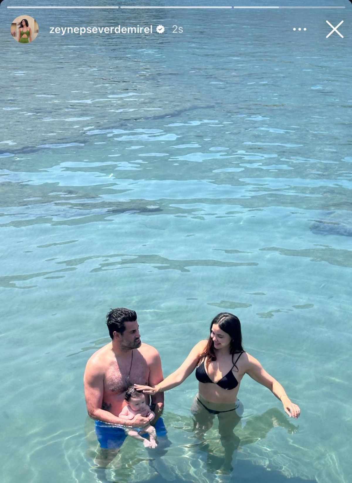 Yasmin’in ilk kez denize girdiği tatil fotoğraflarını paylaşan Volkan Demirel ile Zeynep Demirel, mutluluklarını gözler önüne serdi.